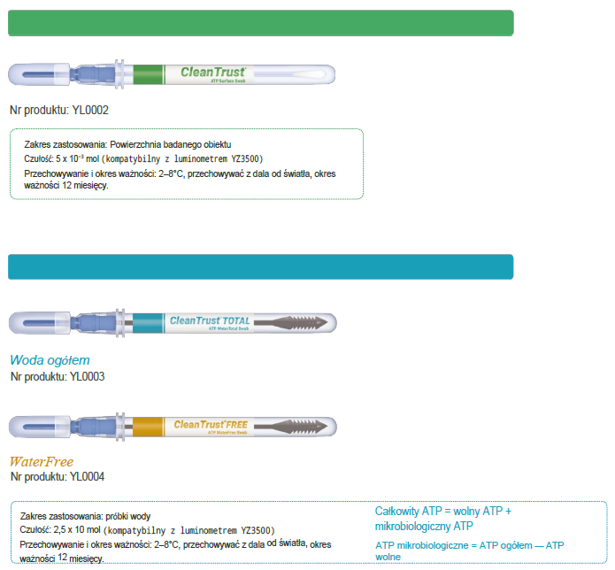 - szybkie i precyzyjne wykrywanie zanieczyszczeń ATP